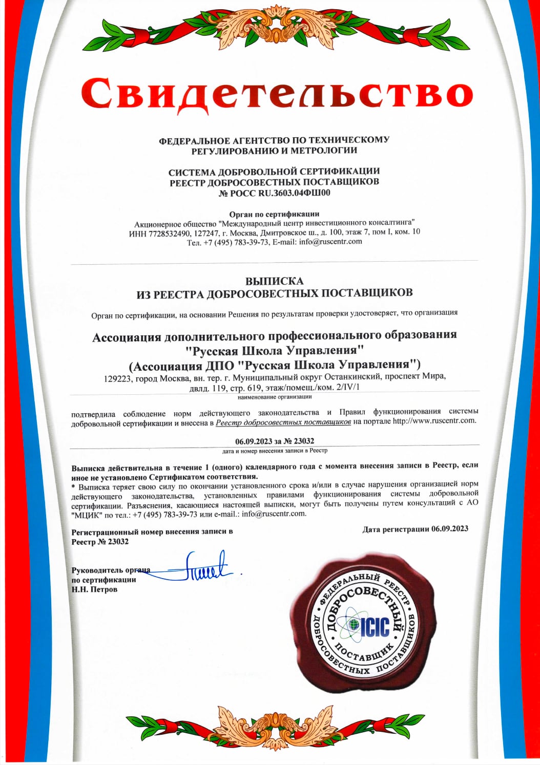по Русской Школе Управления
