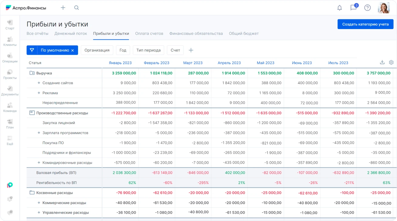 2. Присваивайте операциям понятные категории. Делите расходы на статьи учета, например, на производственные, коммерческие и управленческие издержки.